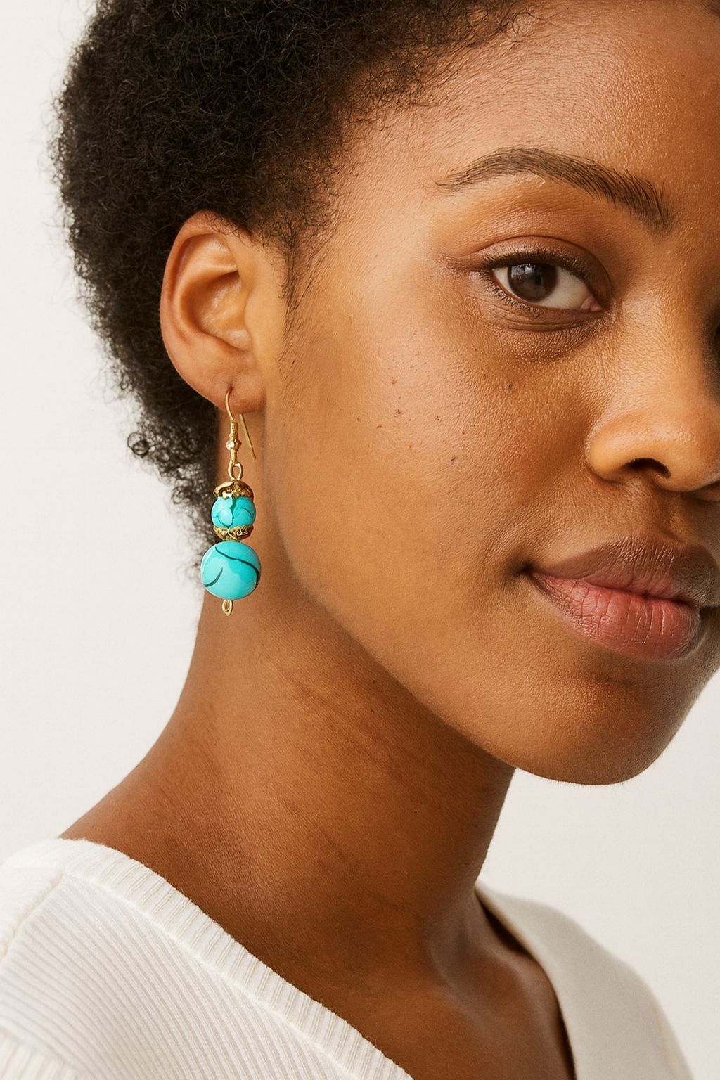 Add a touch of timeless elegance to your look with these stunning imitation turquoise glass bead earrings. Carefully crafted the vibrant blue glass beads mimic the natural beauty of turquoise, offering a serene, ocean-inspired charm. Lightweight and versatile, these earrings are perfect for both casual and special occasions. Let these eye-catching accessories elevate your style with splash of color and sophistication